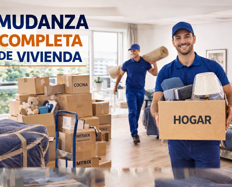 Ofrecemos un servicio de mudanza completa en Madrid, ideal para quienes buscan una solución integral, rápida y sin preocupaciones. Nos encargamos de todo el proceso para que no tengas que preocuparte por nada. Realizamos mudanzas completas de viviendas, pisos, chalets y oficinas, gestionando desde el embalaje hasta la colocación final en tu nuevo hogar o local.